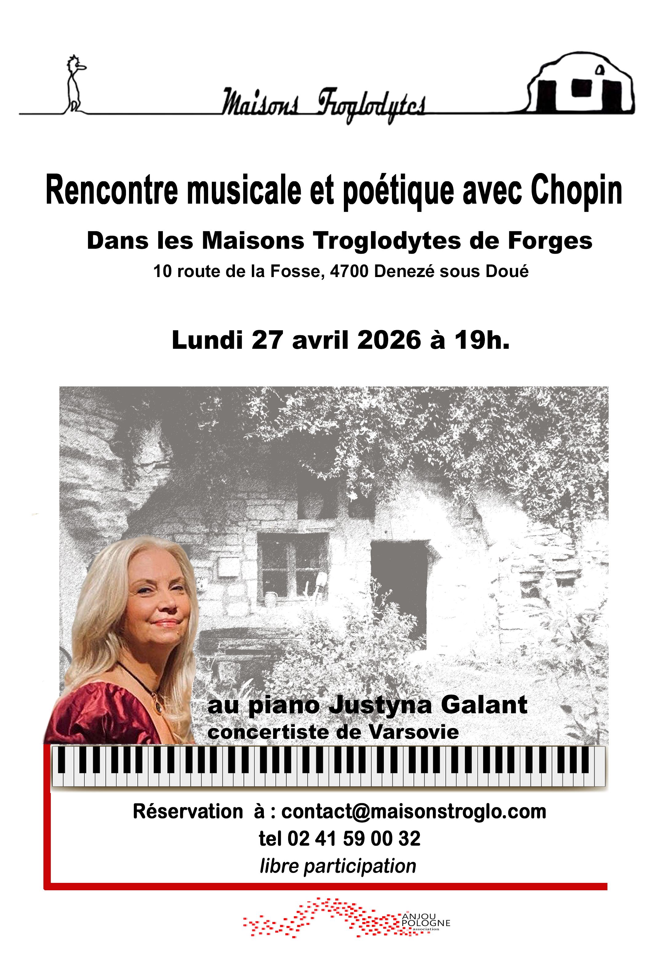 Nous aurons le plaisir d’accueillir à nouveau la talentueuse concertiste de Varsovie, Justyna Galant, pour une rencontre musicale et poétique autour de Chopin, dans le cadre unique et intimiste de nos habitations troglodytes.